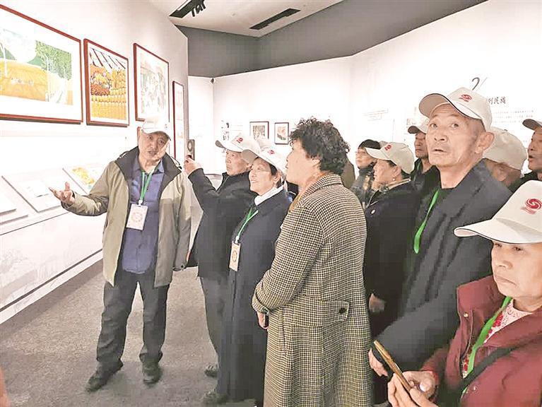 沈克斌(左一)講解沈家河版畫(huà)藝術(shù)特色。