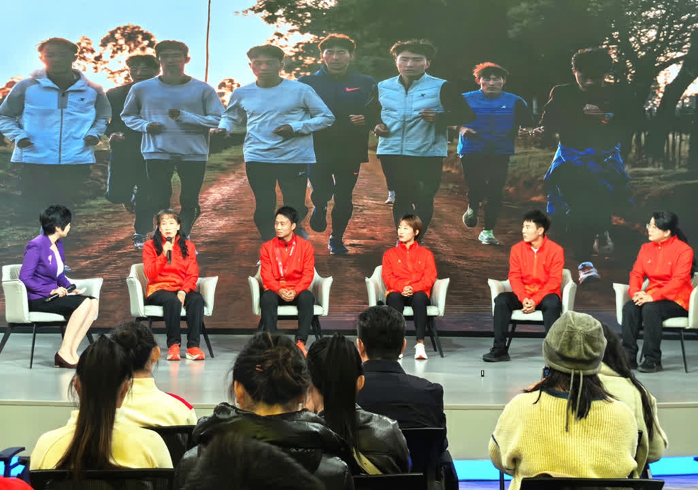 寧夏體育局副局長(zhǎng)岳彤介紹第十五屆全國運(yùn)動(dòng)會(huì)寧夏取得的戰(zhàn)績(jī)。