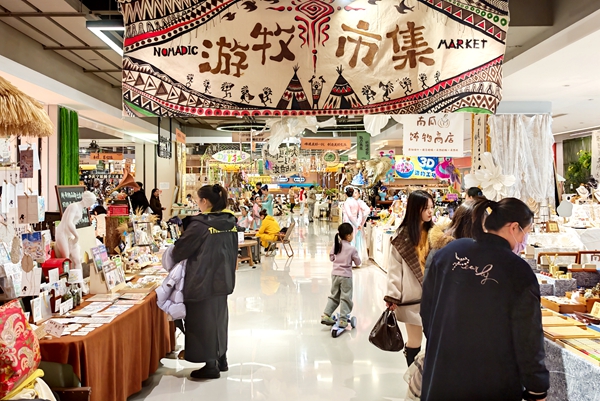 此外,多元化的配套活動讓整場雅集更具吸引力?!啊取Ed慶”咖啡節(jié)從上午11點(diǎn)便持續(xù)升溫,親民的定價更是俘獲了眾多年輕消費(fèi)者?,F(xiàn)代城六樓鐘書閣旁的摩登市集同樣人氣爆棚,圍爐煮茶、藝術(shù)畫展、二手書籍、匠心手作、古琴展演等多個攤位錯落排布,搭配城市露營主題美陳與網(wǎng)紅打卡點(diǎn),營造出兼具“松弛感”與“煙火氣”的銀川老城新型文化空間。