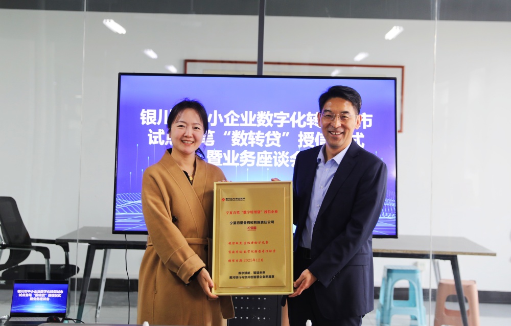 黃河銀行向?qū)幭蔫嚼锵汨坭接邢挢?zé)任公司正式授予“寧夏首筆數(shù)字轉(zhuǎn)型貸企業(yè)”牌匾,標(biāo)志著銀川市中小企業(yè)數(shù)字化轉(zhuǎn)型金融支持機(jī)制正式落地運(yùn)行,政、銀、企三方協(xié)同推進(jìn)數(shù)字化轉(zhuǎn)型的合作模式進(jìn)入實(shí)質(zhì)性推廣階段。