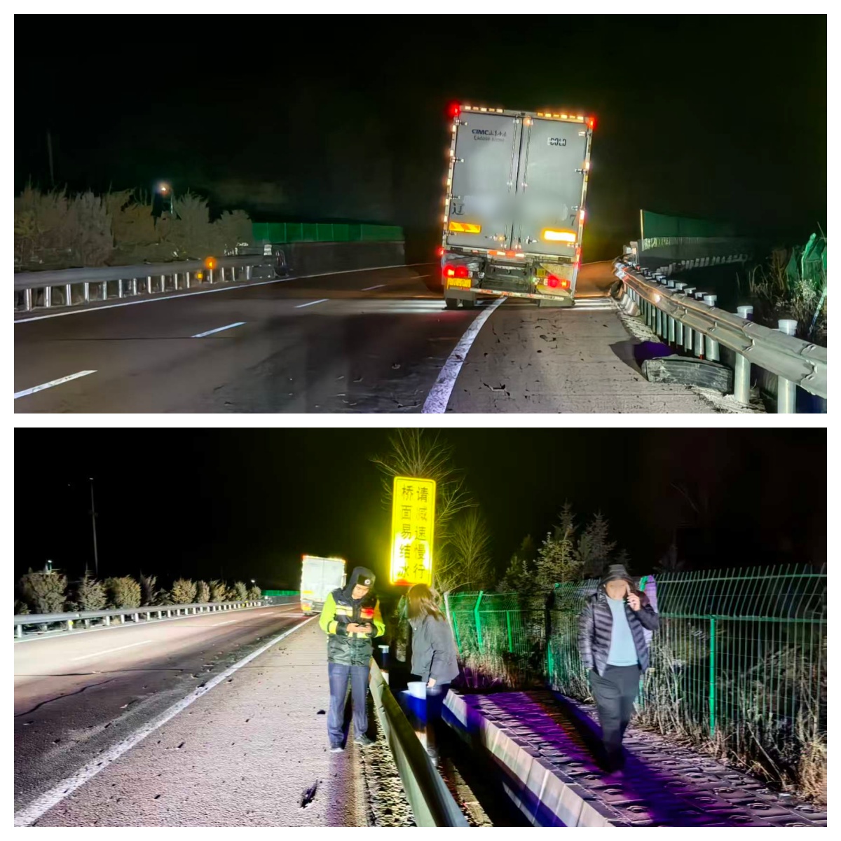 12月8日晚,固原高速交警三大隊(duì)民警在執(zhí)行日常夜間巡邏勤務(wù)時(shí),在涇華高速7公里左右發(fā)現(xiàn)一輛大型貨車爆胎后??吭趹?yīng)急車道和行車道中間,后方未設(shè)立任何警示標(biāo)志,過往車輛紛紛避讓,存在極大安全隱患。