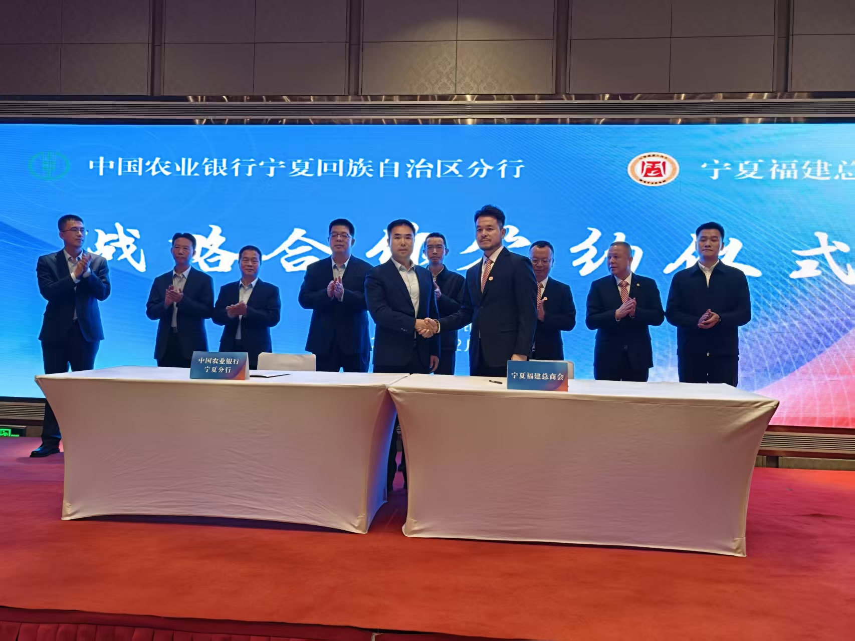 12月20日,中國農(nóng)業(yè)銀行寧夏分行與寧夏福建總商會(huì)戰(zhàn)略合作簽約儀式在銀川舉行,同步發(fā)布“閩寧協(xié)作貸”專屬金融產(chǎn)品并為授信客戶授牌,標(biāo)志著“銀行+商會(huì)+企業(yè)”合作模式邁入資源共享、互利共贏的全新階段。