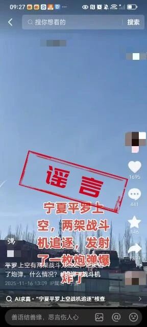 11月16日,家住平羅縣的劉某某偶然發(fā)現(xiàn)天上飛過兩架飛機,隨即用手機拍攝視頻并發(fā)布至某視頻平臺,還編造“平羅上空出現(xiàn)兩架戰(zhàn)斗機追逐并發(fā)射一枚炮彈”的虛假配文。該視頻發(fā)布后迅速傳播,短短一天內(nèi)瀏覽量高達42萬次,相關(guān)謠言信息同步在多個社交平臺擴散,引發(fā)大量網(wǎng)民關(guān)注,造成轄區(qū)部分居民恐慌,嚴(yán)重擾亂了社會公眾秩序。平羅縣公安局網(wǎng)安大隊在網(wǎng)絡(luò)巡查工作中及時發(fā)現(xiàn)該虛假信息,第一時間啟動核查處置程序,聯(lián)合城關(guān)南街派出所將散播謠言的劉某某抓獲。